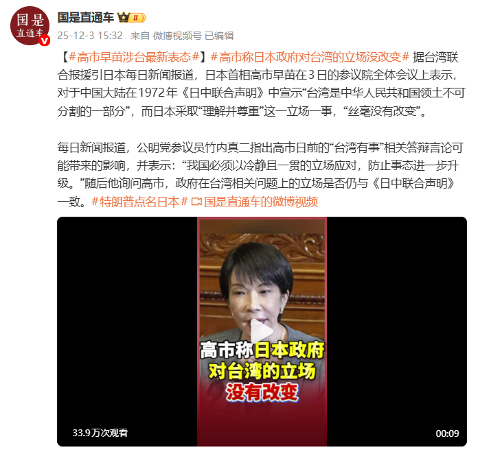 证明在中方的施压下,至少明面上,高市早苗现在不太敢触碰台海问题。