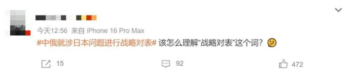 今天(12月3号)热搜第一写着,中俄就涉日本问题进行战略对表。